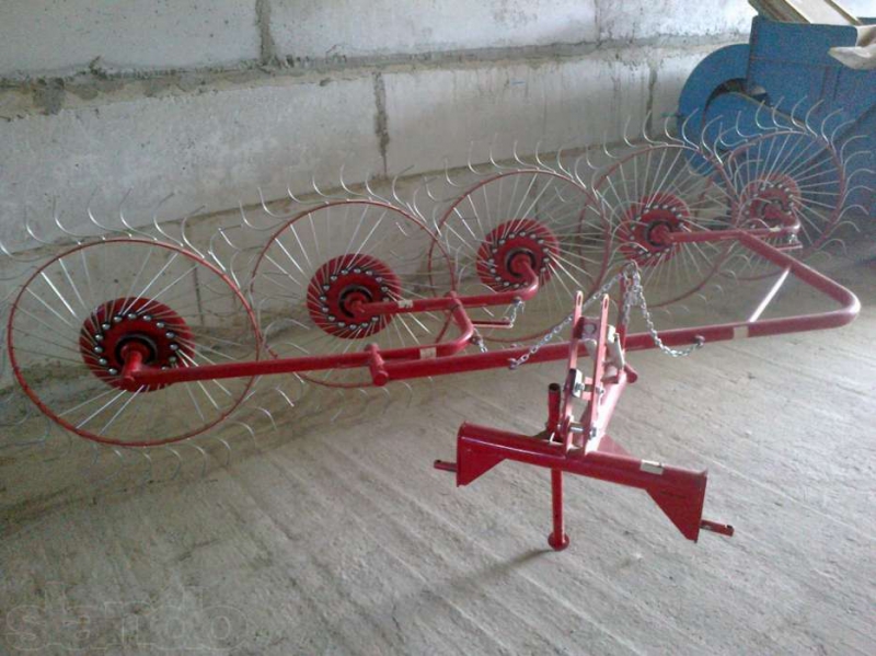 Страна-производитель: Турция Состояние: Новое Тип тракторных грабель: Грабли-ворошилки Цена договорная Грабли-ворошилки турецкие 5-колесные осуществляют сгребание в валки проявленной травы из прокосов, ворошения и оборачивания. Изготовлены из высокопрочной стали, имеют утолщенную раму и длинные толстые спицы. К раме на подшипниках крепятся 5 колес диаметром - 142 см.