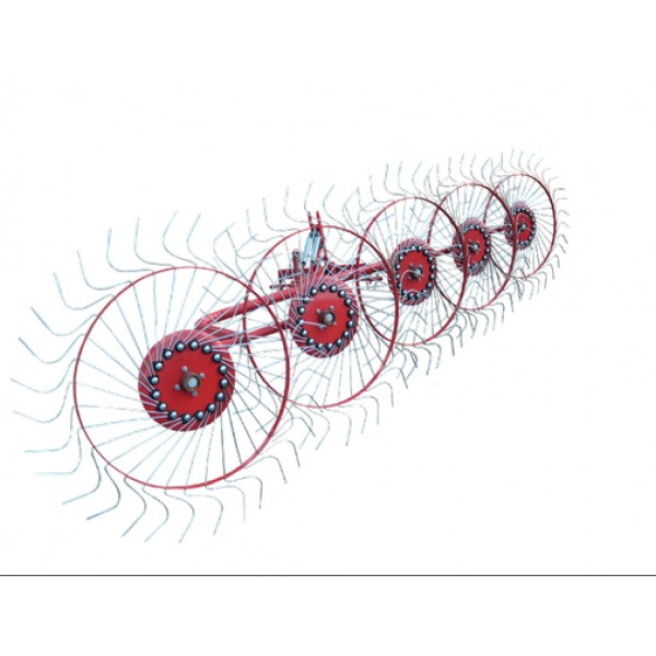 Тракторные грабли "Солнышко" Agromech 5 секций - для обработки трав различной степени влажности в прокосах и подготовке к последующей уборке готового рабочего материала. 5 роторов.